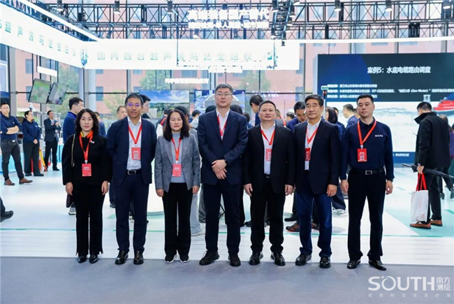 中国科学院、中国工程院院士,国家最高科学技术奖获得者李德仁(左三);中国工程院院士刘经南(左二)亲临南方展台