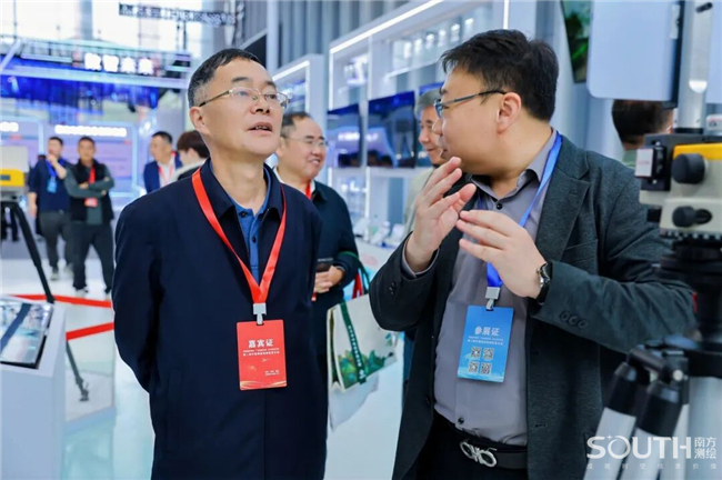 自然资源部党组成员、副部长庄少勤在南方展台前驻足停留,对国产全站仪桂冠之作——NT10机器人颇为关注,仔细询问了NT10在各行业领域的应用情况,对南方测绘的国产化之路表示肯定。庄副部长还关切了集团海外市场布局规划,以及光电仪器、激光产品的核心技术优势与热销产品的全球市场竞争力,鼓励南方立足优势,稳健发展。